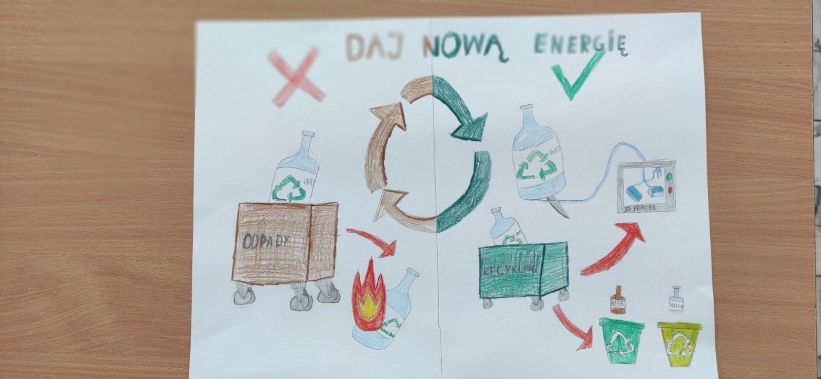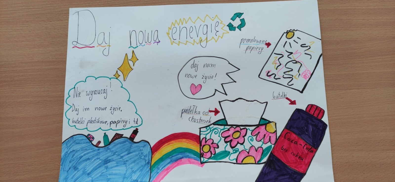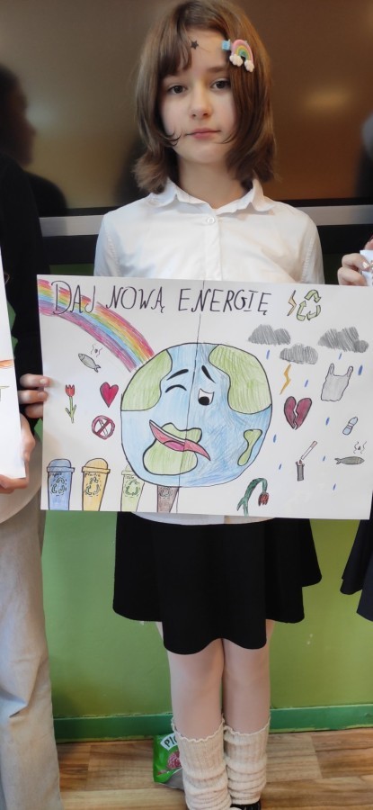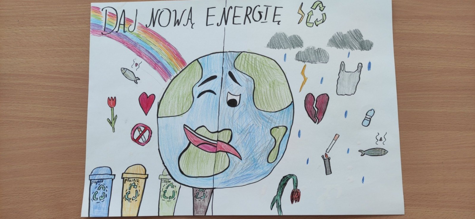 W grudniu w ramach działań twórczych uczniowie klas 4 i 5 wykonali plakaty edukacyjne o tematyce ekologicznej pt. "DAJ NOWĄ ENERGIĘ".
