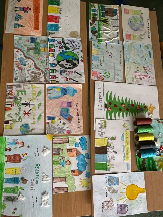 W grudniu w ramach działań twórczych w klasach 1-3 został przeprowadzony konkurs plastyczny na najciekawszy plakat edukacyjny o tematyce ekologicznej pt. "DAJ NOWĄ ENERGIĘ".