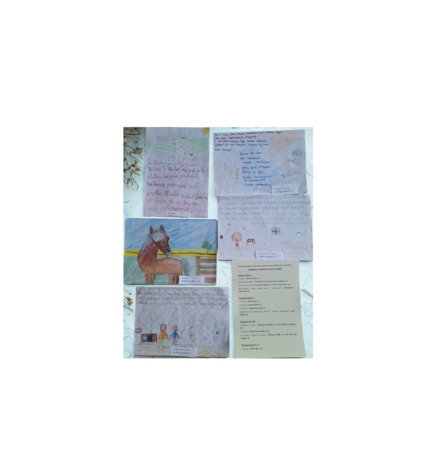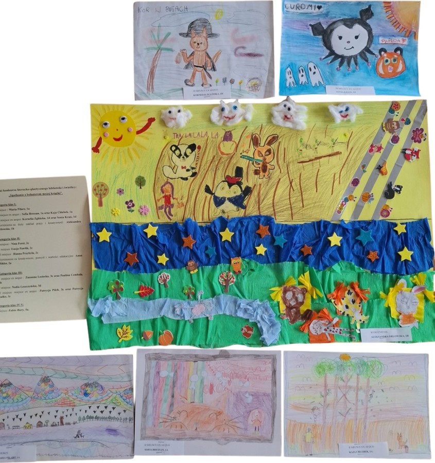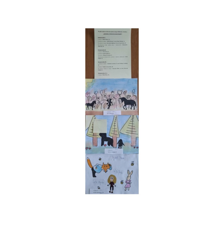 Z okazji Międzynarodowego Miesiąca Bibliotek Szkolnych, w miesiącu październiku, biblioteka wraz ze świetlicą szkolną zorganizowały konkurs literacko-plastyczny „Spotkanie z bohaterem mojej książki”.