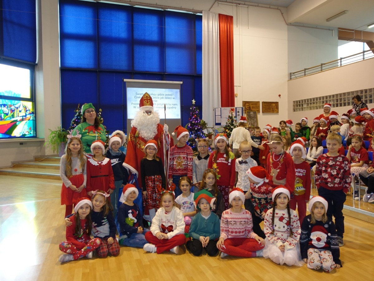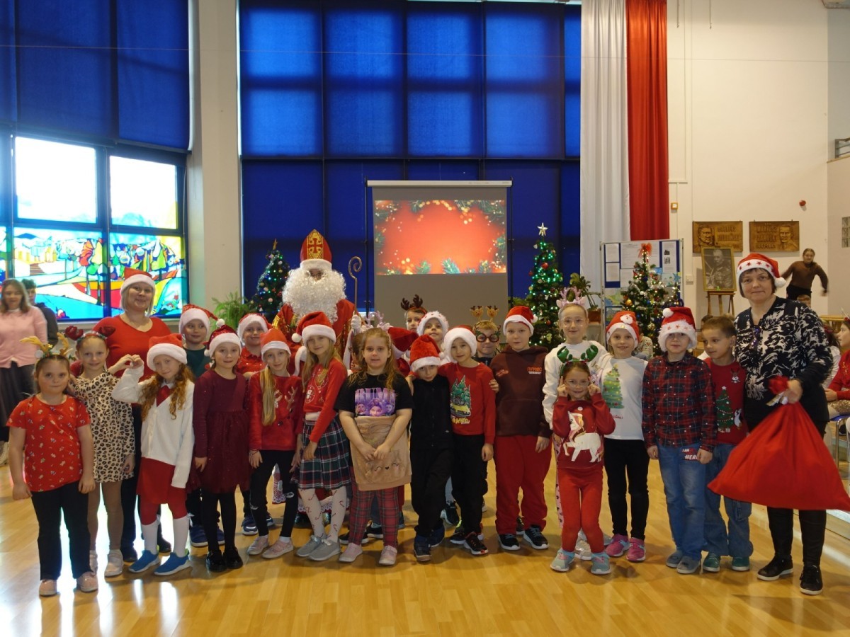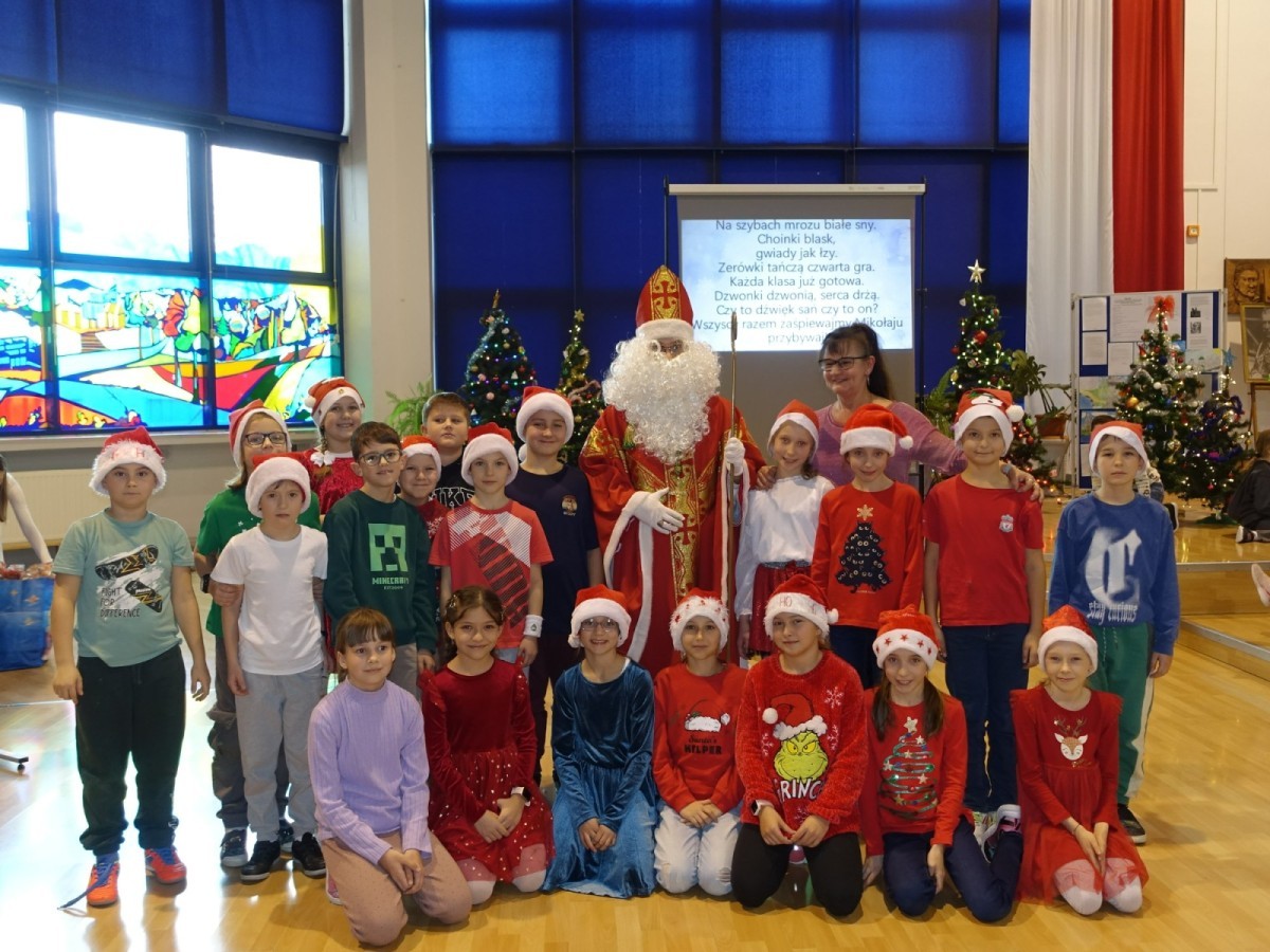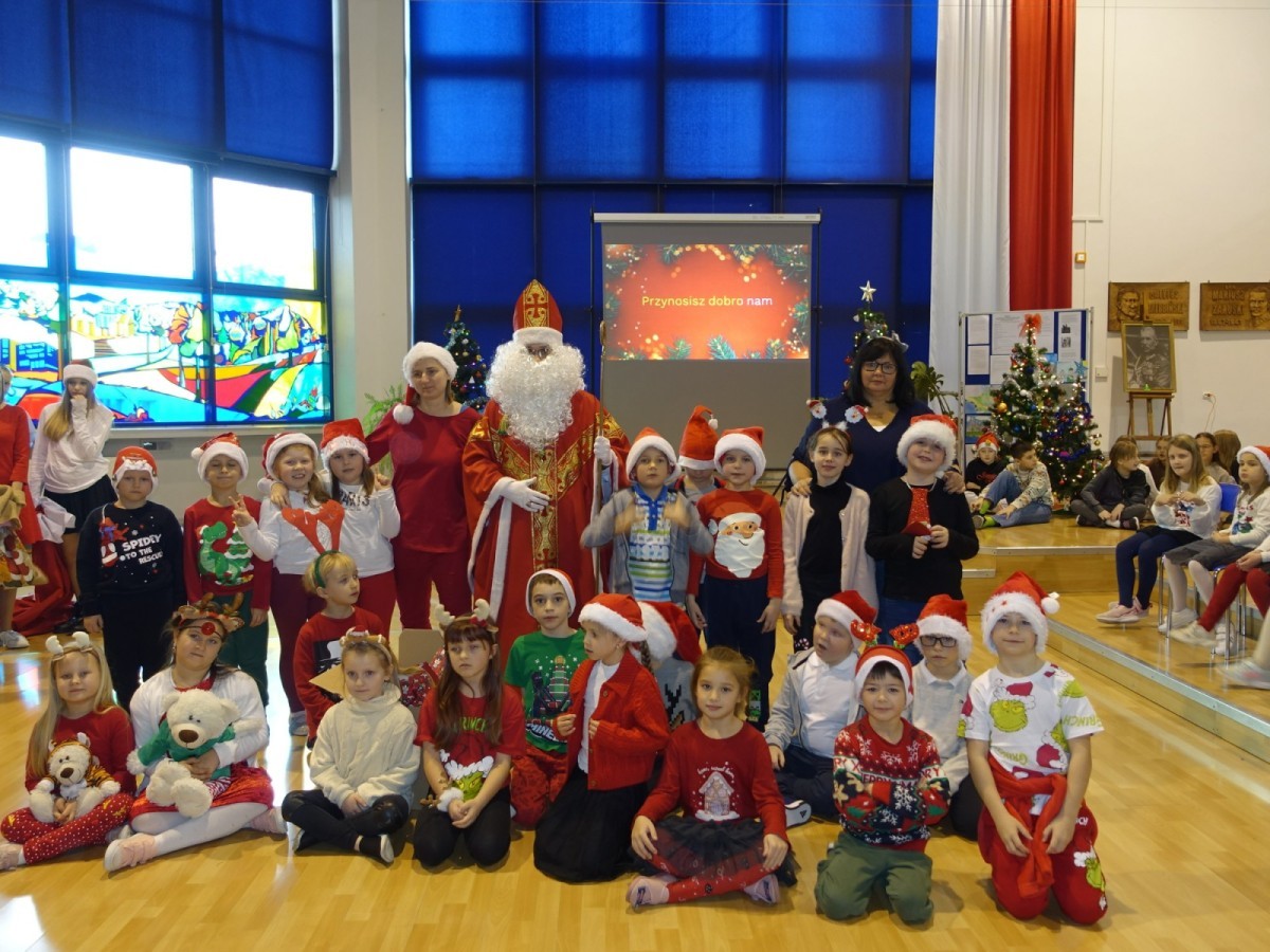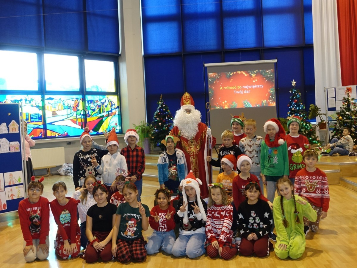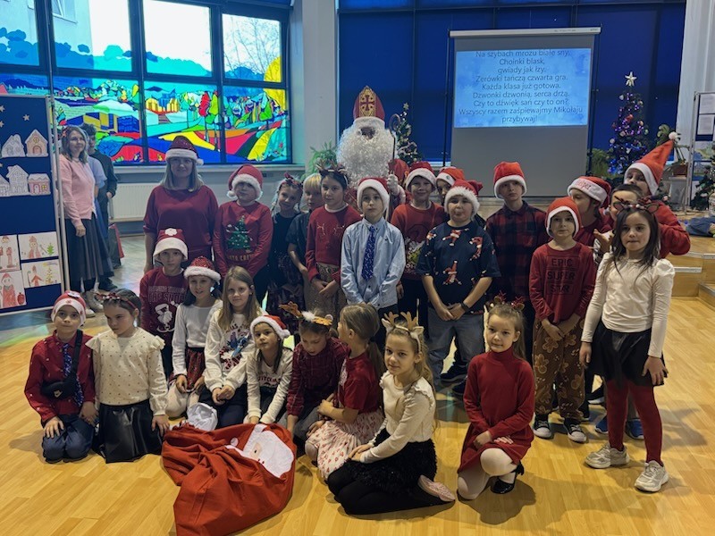 Dziś odwiedził nas święty Mikołaj, którego na wejściu powitały cztery żywioły – Woda, Ogień, Wiatr i Ziemia. Każdy z żywiołów opowiadał o oczekiwaniu na przyjście Jezusa, wprowadzając nas w atmosferę radosnego oczekiwania. Następnie wysłuchaliśmy krótkiej historii o życiu św. Mikołaja z Miry, pełnej dobroci i niesienia pomocy innym. Spotkanie zakończyliśmy wspólnym wykonaniem świątecznej piosenki, tworząc pełen ciepła nastrój.