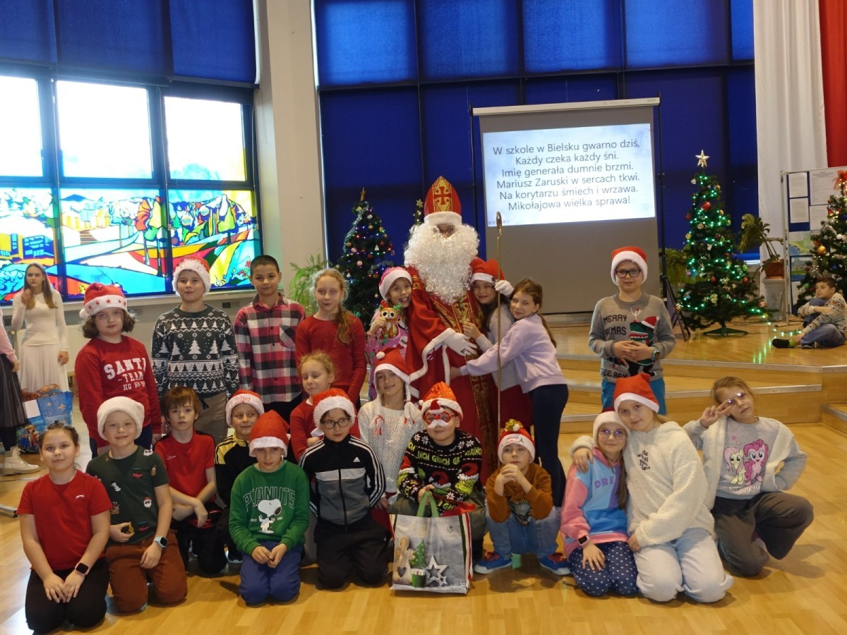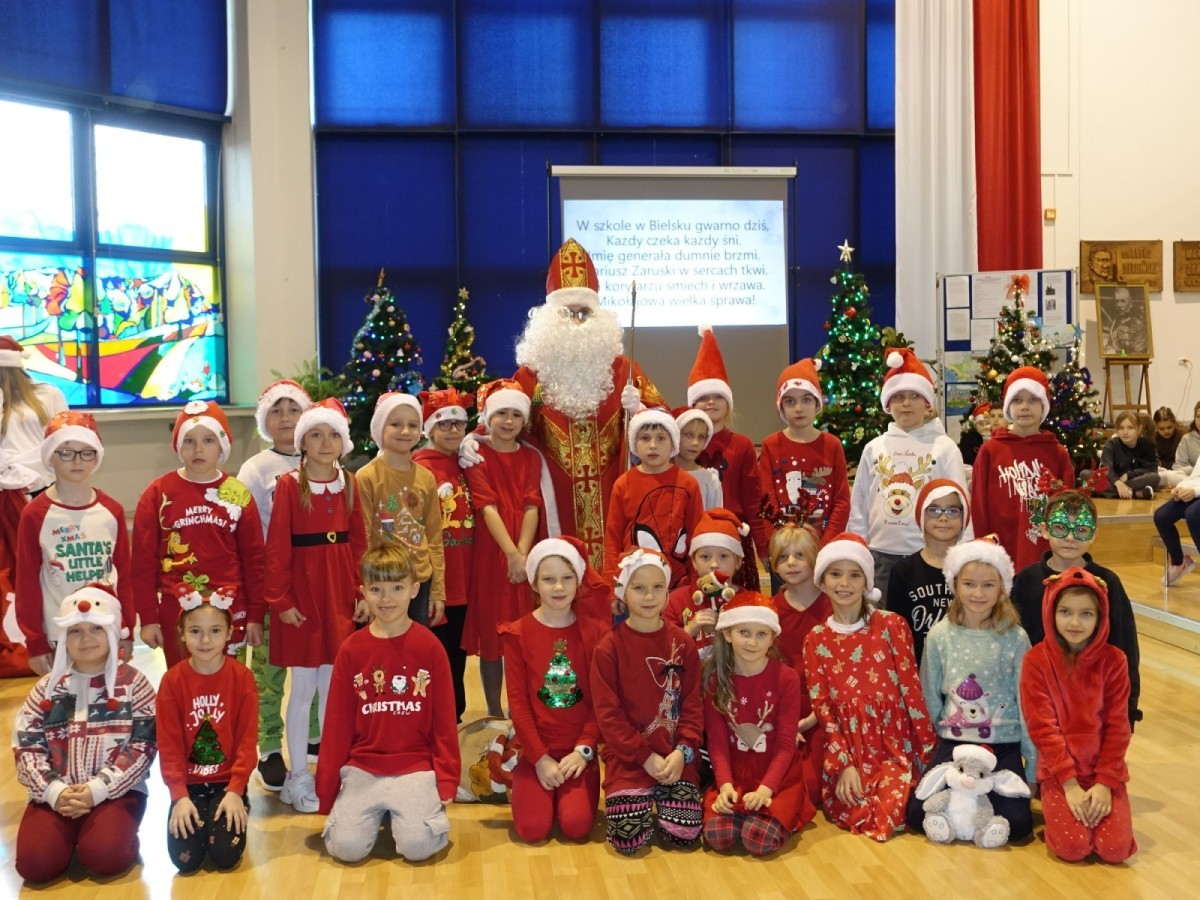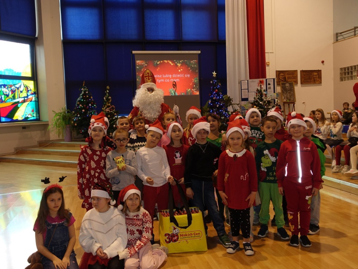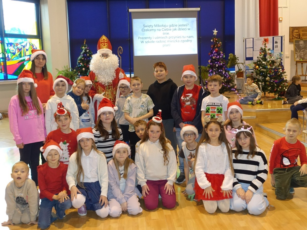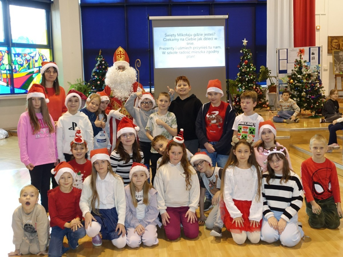 Dziś odwiedził nas święty Mikołaj, którego na wejściu powitały cztery żywioły – Woda, Ogień, Wiatr i Ziemia. Każdy z żywiołów opowiadał o oczekiwaniu na przyjście Jezusa, wprowadzając nas w atmosferę radosnego oczekiwania. Następnie wysłuchaliśmy krótkiej historii o życiu św. Mikołaja z Miry, pełnej dobroci i niesienia pomocy innym. Spotkanie zakończyliśmy wspólnym wykonaniem świątecznej piosenki, tworząc pełen ciepła nastrój.