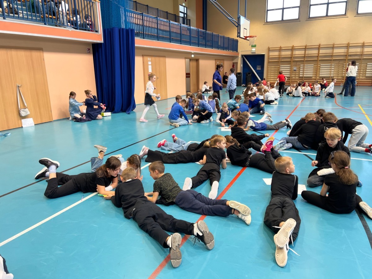 Ważnym elementem projektu była gra terenowa, która pozwoliła uczniom utrwalić wiedzę o historii Polski poprzez aktywność ruchową i współpracę w grupach. Zwieńczeniem wydarzenia było wspólne odtańczenie poloneza oraz wyjście do miejsca pamięci, gdzie uczniowie złożyli kwiaty i zapalili znicz.