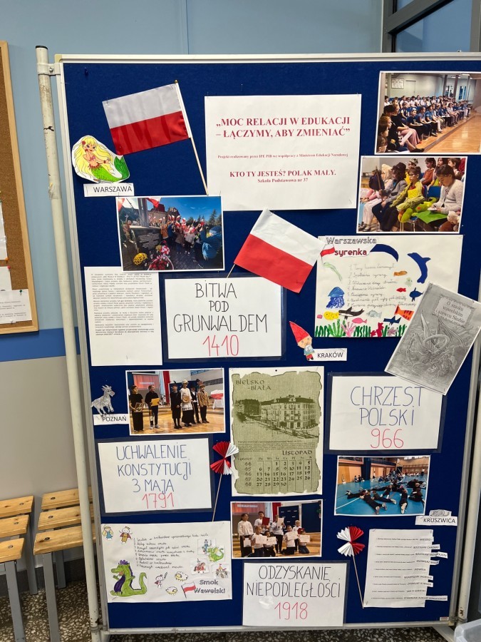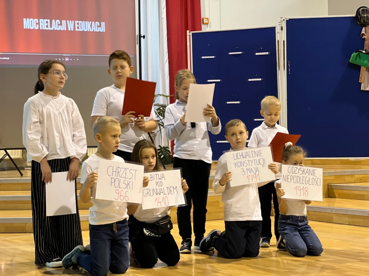 W listopadzie uczniowie klas trzecich wzięli udział w projekcie edukacyjnym „MOC RELACJI W EDUKACJI – KTO TY JESTEŚ? POLAK MAŁY”, który został zrealizowany w związku z obchodami Narodowego Święta Niepodległości. Celem projektu było budowanie postaw patriotycznych, wzmacnianie relacji między uczniami oraz przybliżenie historii Polski w ciekawy i angażujący sposób.