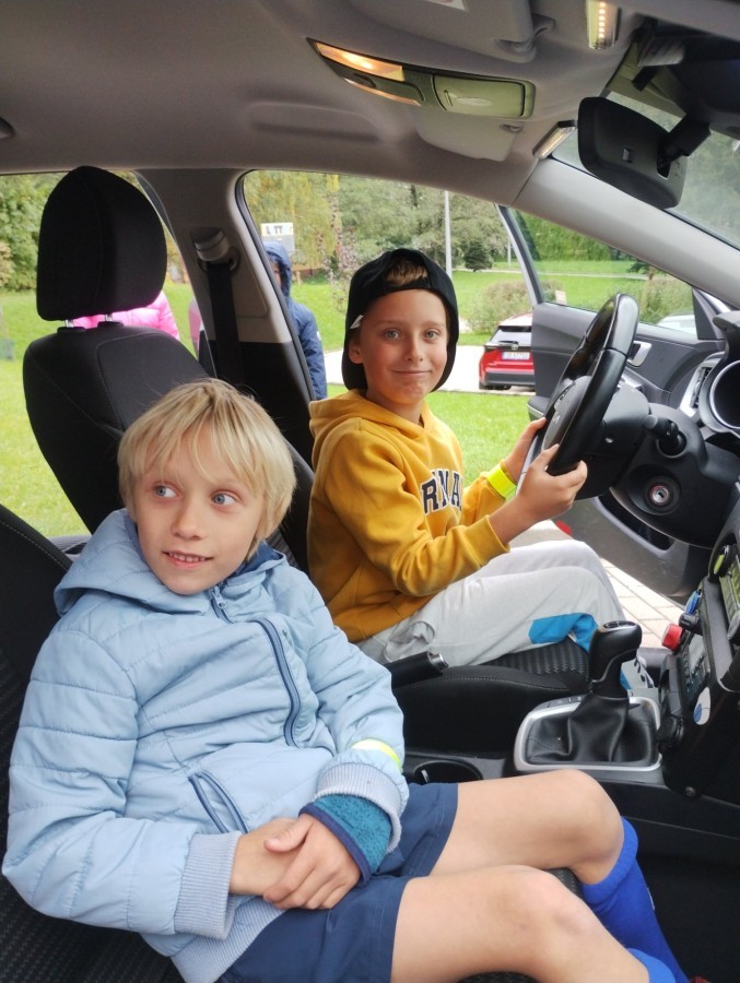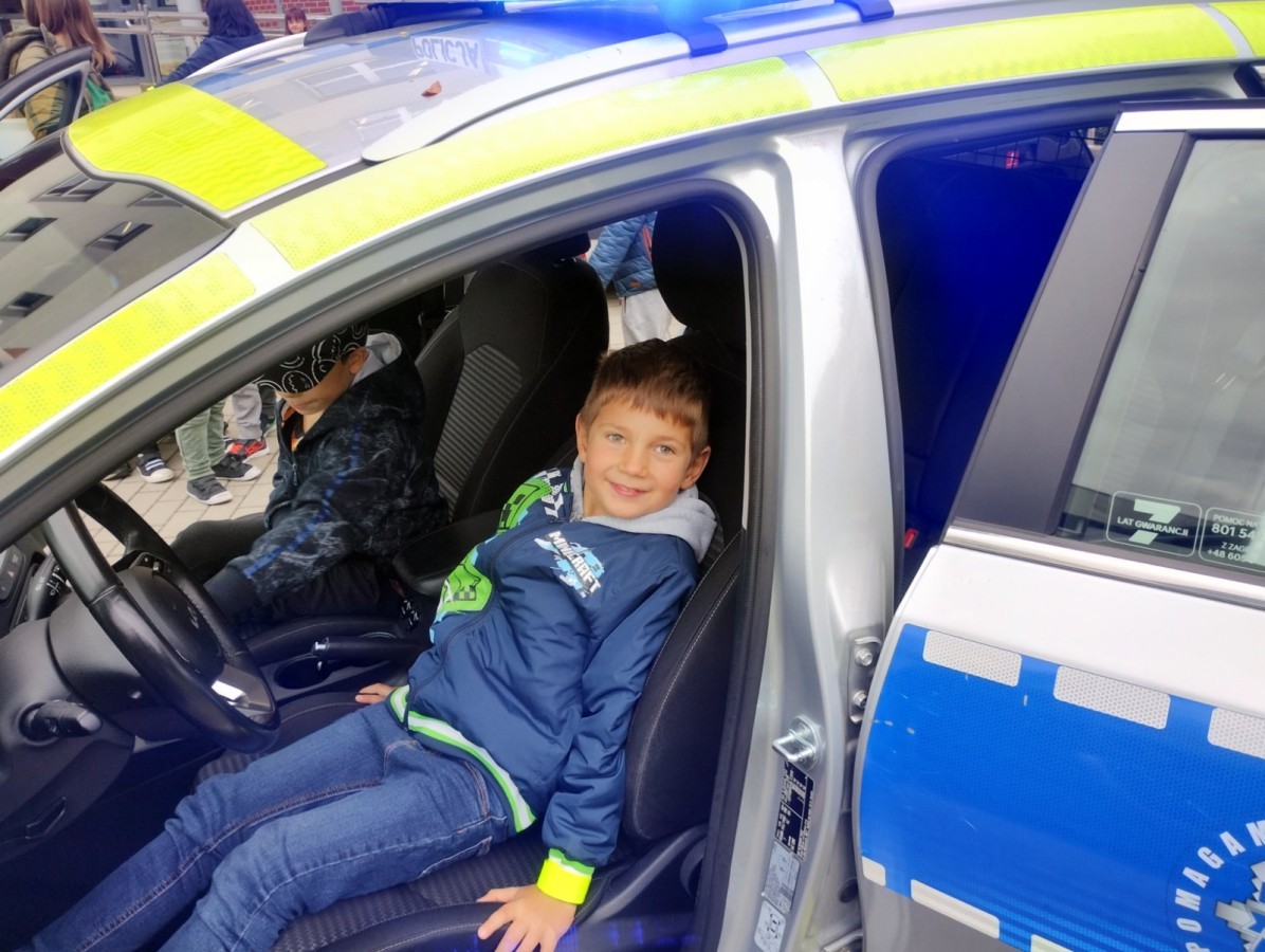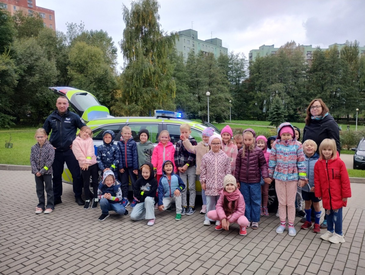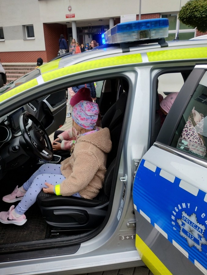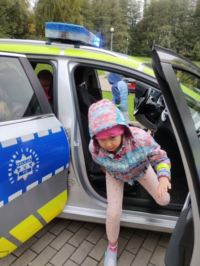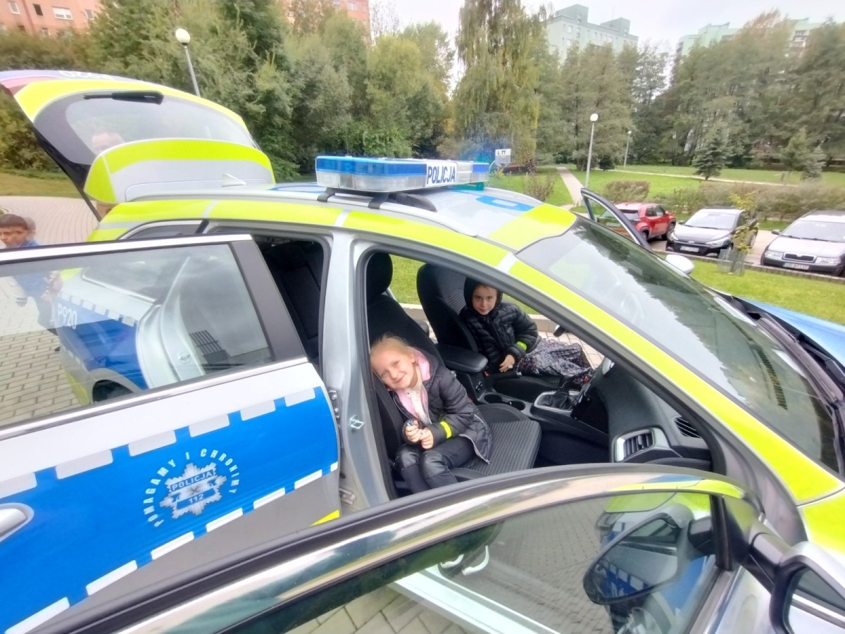 Po prelekcji dzieci z zaciekawieniem oglądały samochód policyjny.