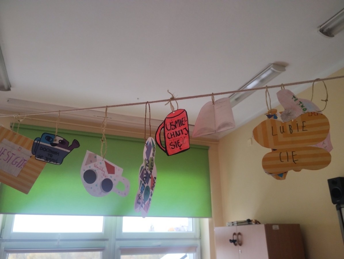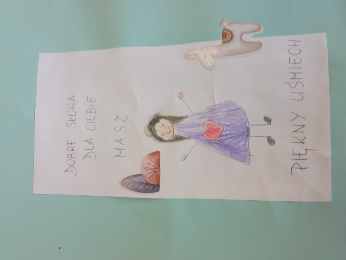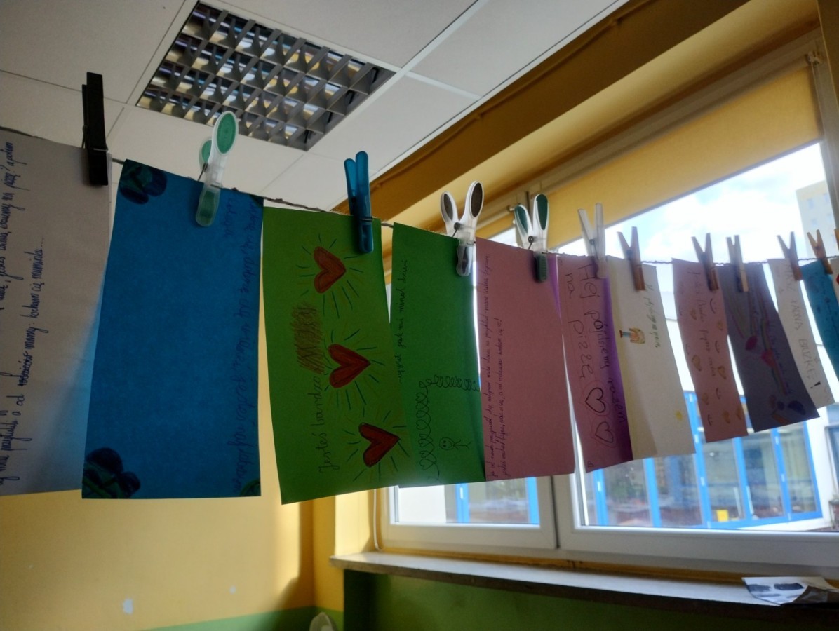 W świetlicy szkolnej zorganizowano akcję „Dobre słowa – miły prezent”. Uczniowie przygotowali kartki z miłymi przesłaniami i obdarowywali się nimi nawzajem, rozmawiając o kulturze języka i mocy pozytywnego słowa.
