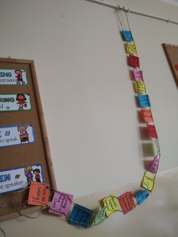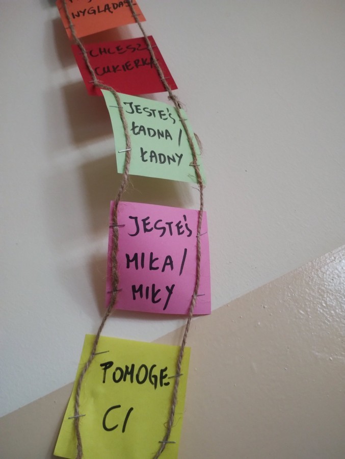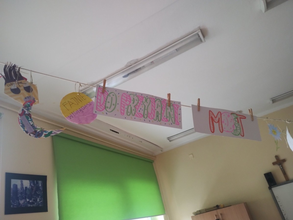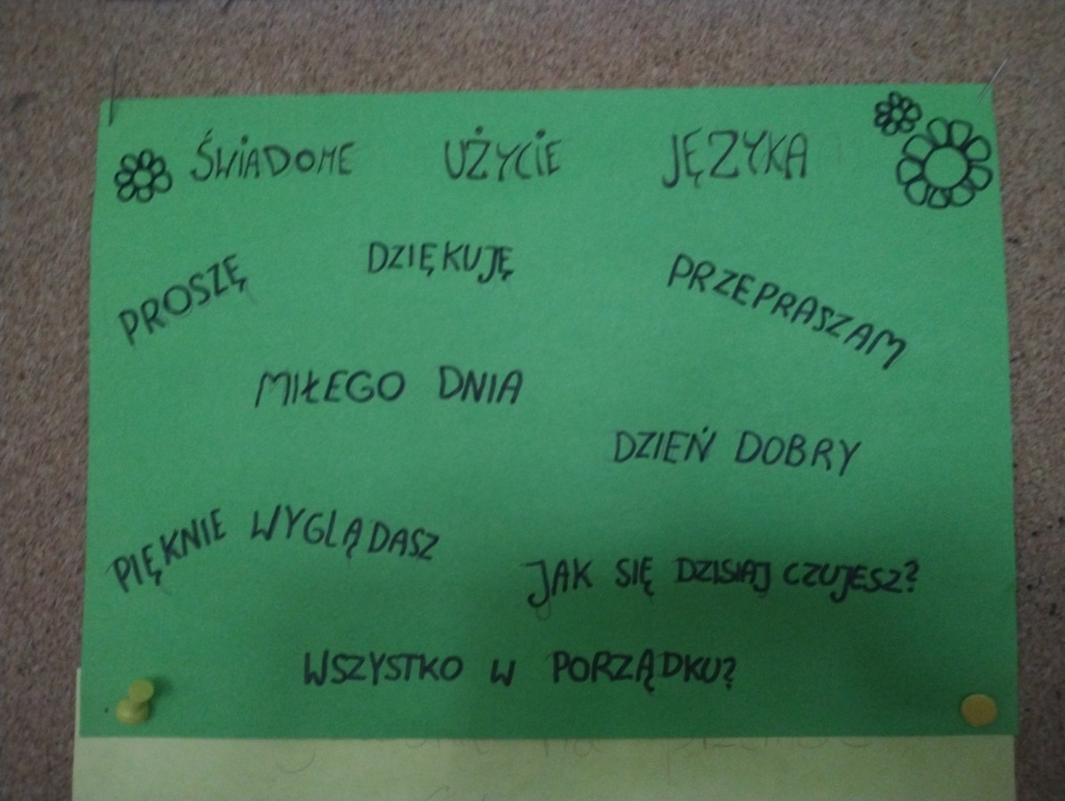 W świetlicy szkolnej zorganizowano akcję „Dobre słowa – miły prezent”. Uczniowie przygotowali kartki z miłymi przesłaniami i obdarowywali się nimi nawzajem, rozmawiając o kulturze języka i mocy pozytywnego słowa.