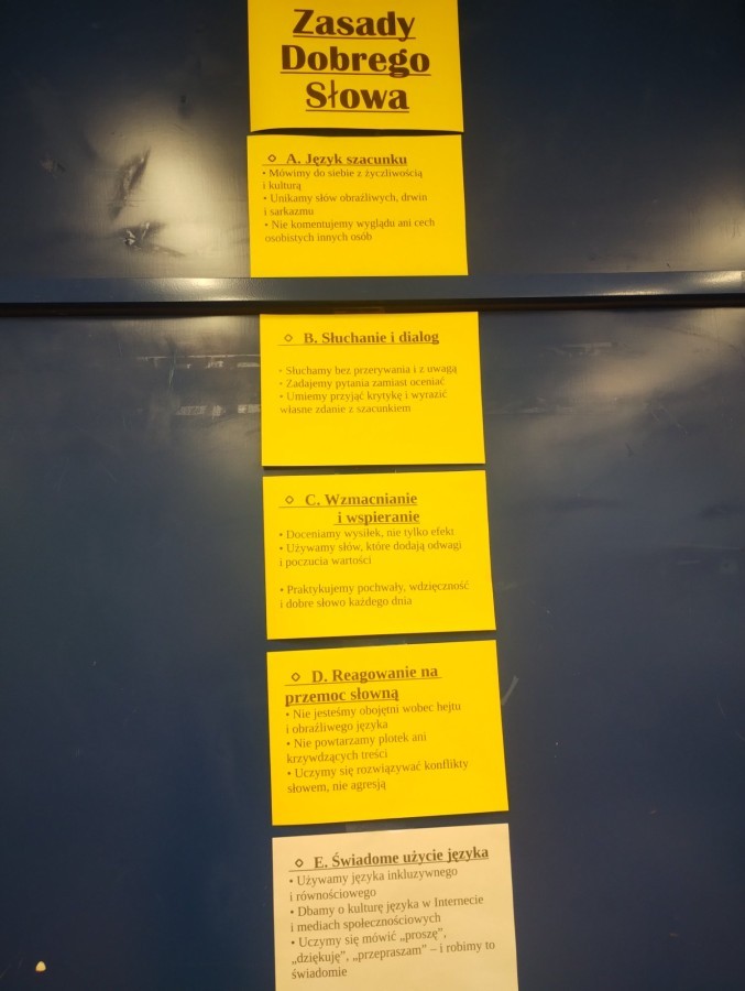 Podczas zajęć uczniowie poznawali znaczenie słów i ich wpływ na relacje międzyludzkie. Tworzyli Klasowe Kodeksy Dobrego Słowa, ucząc się, że sposób, w jaki mówimy, ma ogromne znaczenie dla atmosfery w klasie i w szkole.