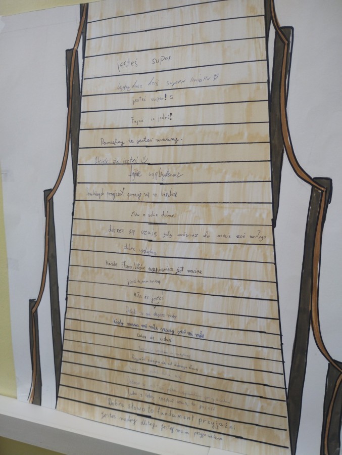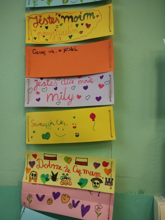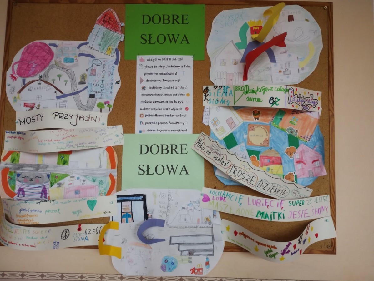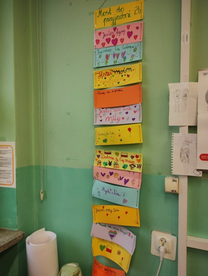 W czasie lekcji zatytułowanych „Most przyjaźni – jak budować dobre relacje” uczniowie rozmawiali o empatii, współpracy i przyjaźni. Powstały symboliczne „Mosty przyjaźni” z zapisanymi słowami wsparcia i życzliwości. Temat ten będzie kontynuowany w niektórych klasach podczas realizacji Programu PCK „Sztuka przyjaźni wg Muminków”.