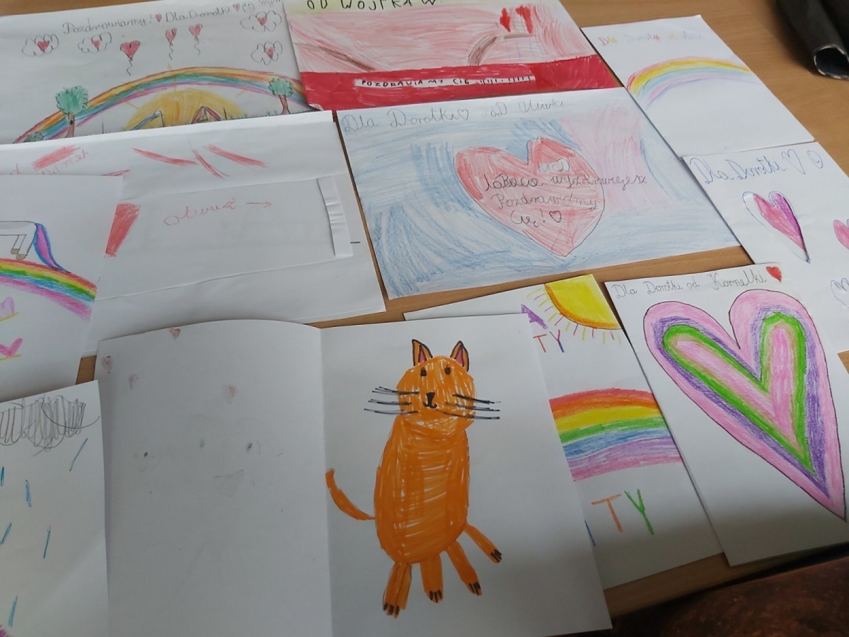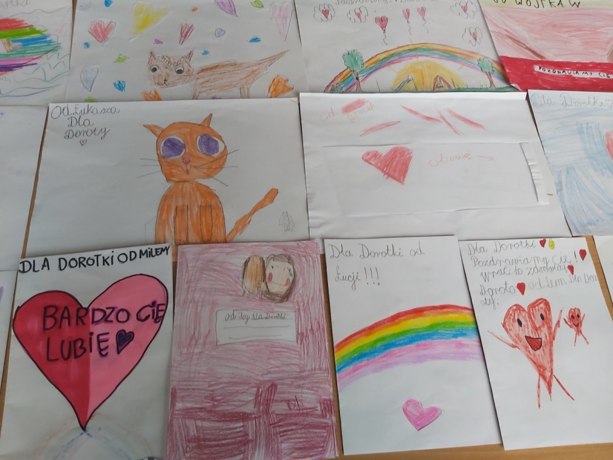 Uczniowie klasy 2c przygotowali kartki z życzeniami dla swojej koleżanki, która złamała nogę. Ciepłe słowa stały się pięknym wyrazem empatii, wsparcia i przyjaźni.