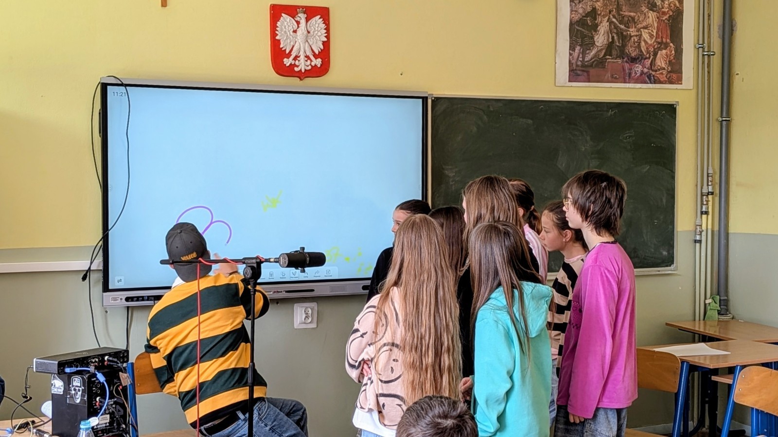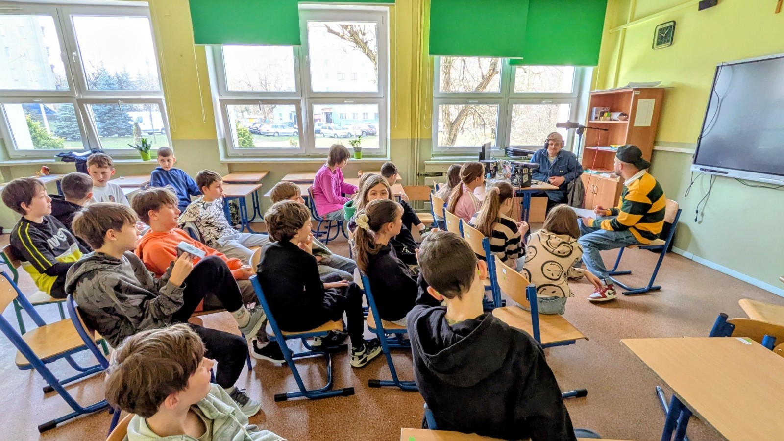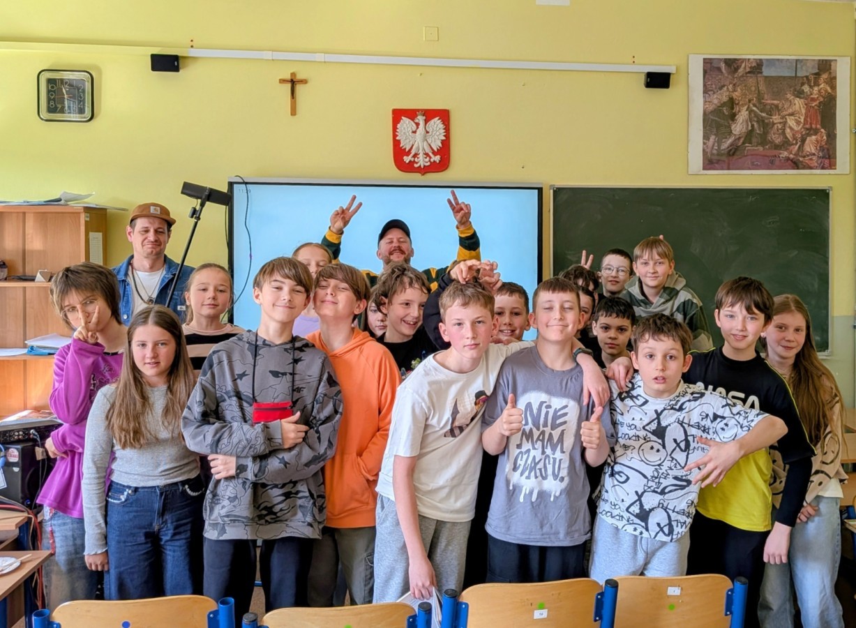 20 marca uczniowie klas 5b i 5d uczestniczyli w inspirujących warsztatach muzycznych, które odbyły się w sali lekcyjnej i na jeden dzień zamieniły ją w przestrzeń twórczej pracy. Zajęcia poprowadził Alien, współtwórca duetu Alien i Majtis – znanego z programu Must Be the Music.
