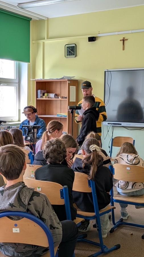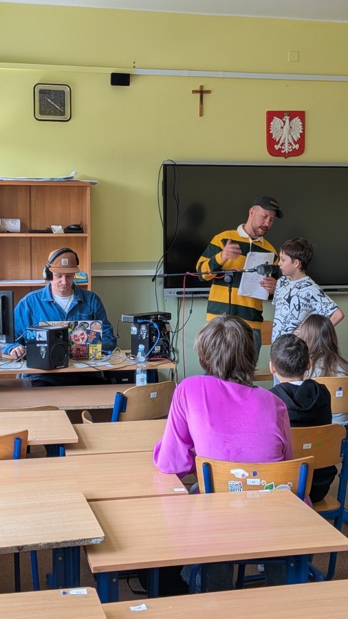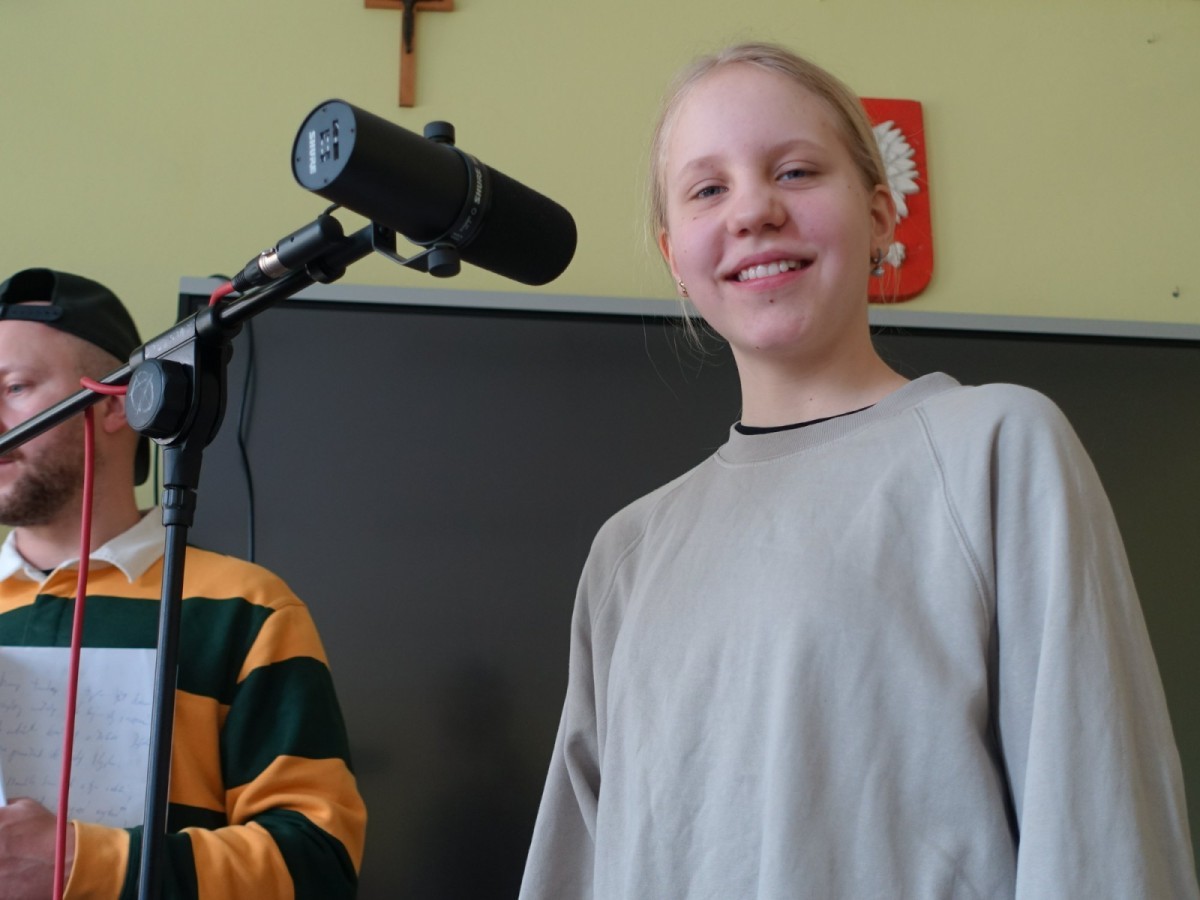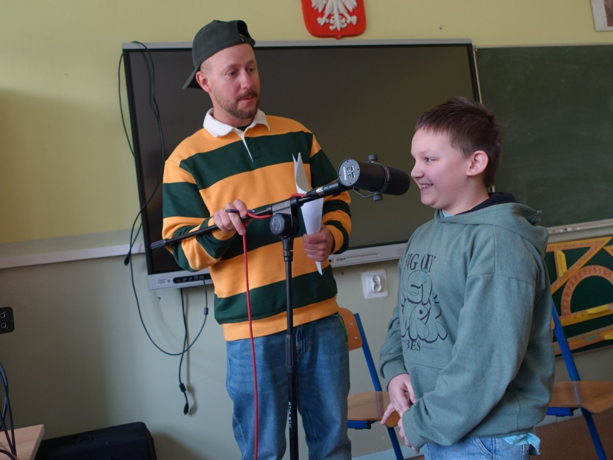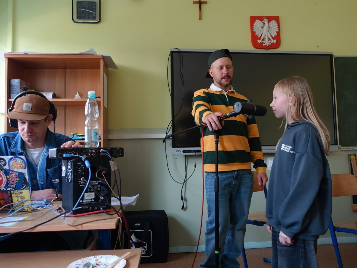 Podczas spotkania uczniowie mieli okazję poznać kulisy pracy artysty, a przede wszystkim sami spróbować swoich sił w tworzeniu muzyki. Współtworzyli teksty, eksperymentowali ze słowem i rytmem, a następnie nagrywali utwory.