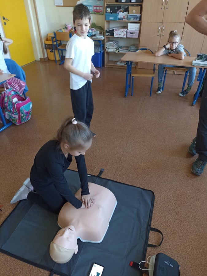 Celem spotkania było zapoznanie uczniów z podstawowymi zasadami udzielania pierwszej pomocy oraz kształtowanie odpowiedzialnych postaw w sytuacjach zagrożenia zdrowia i życia. Podczas zajęć dzieci dowiedziały się, jak prawidłowo wezwać pomoc, jak zachować się w sytuacji wypadku oraz jak ocenić stan poszkodowanego.