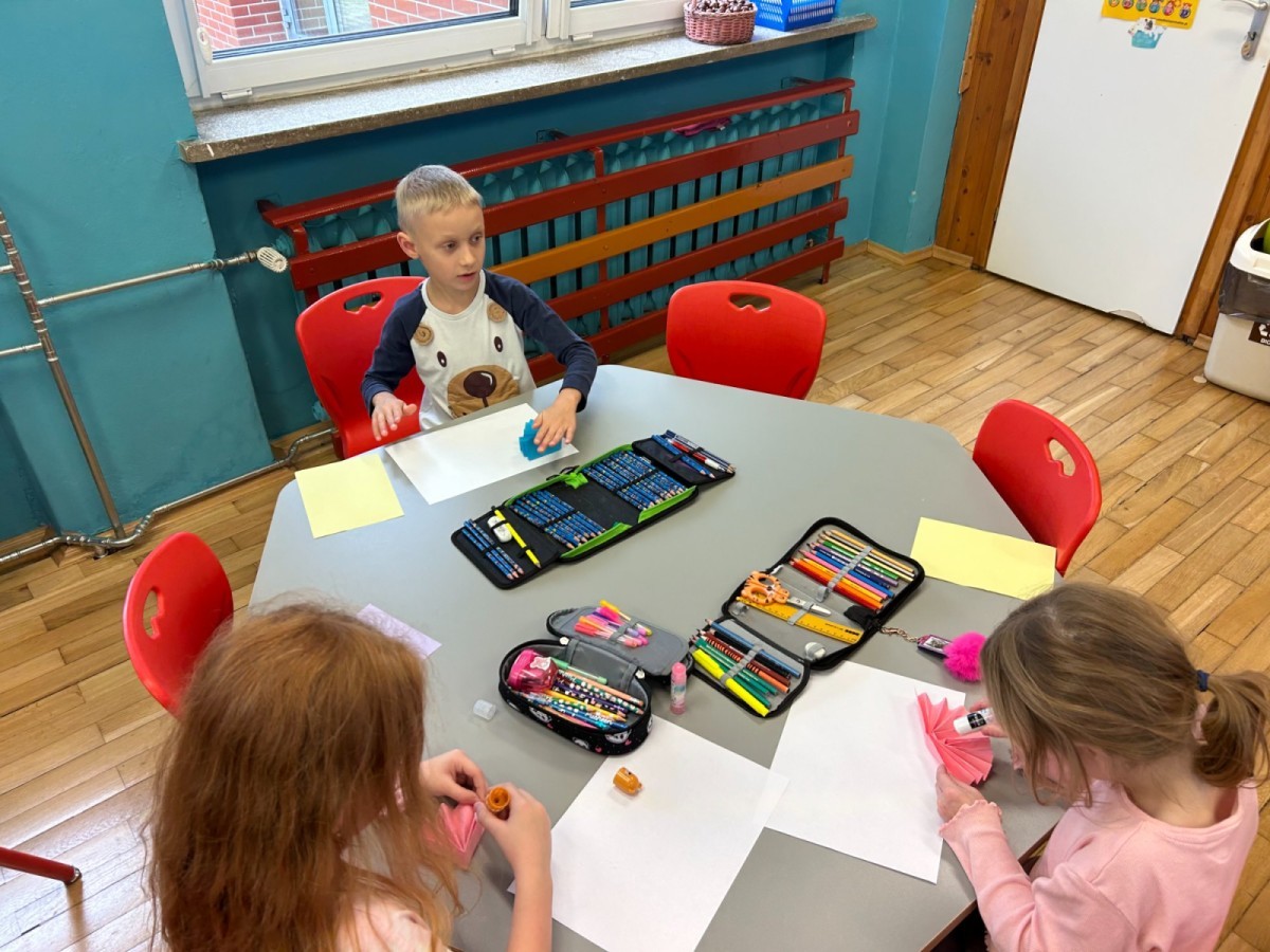 „Malujemy tu, czytamy, lekcje także odrabiamy..., a więc spędzaj czas w świetlicy, baw się razem z nami, a zapełnisz świat swój wokół przyjaciółmi przygodami…”