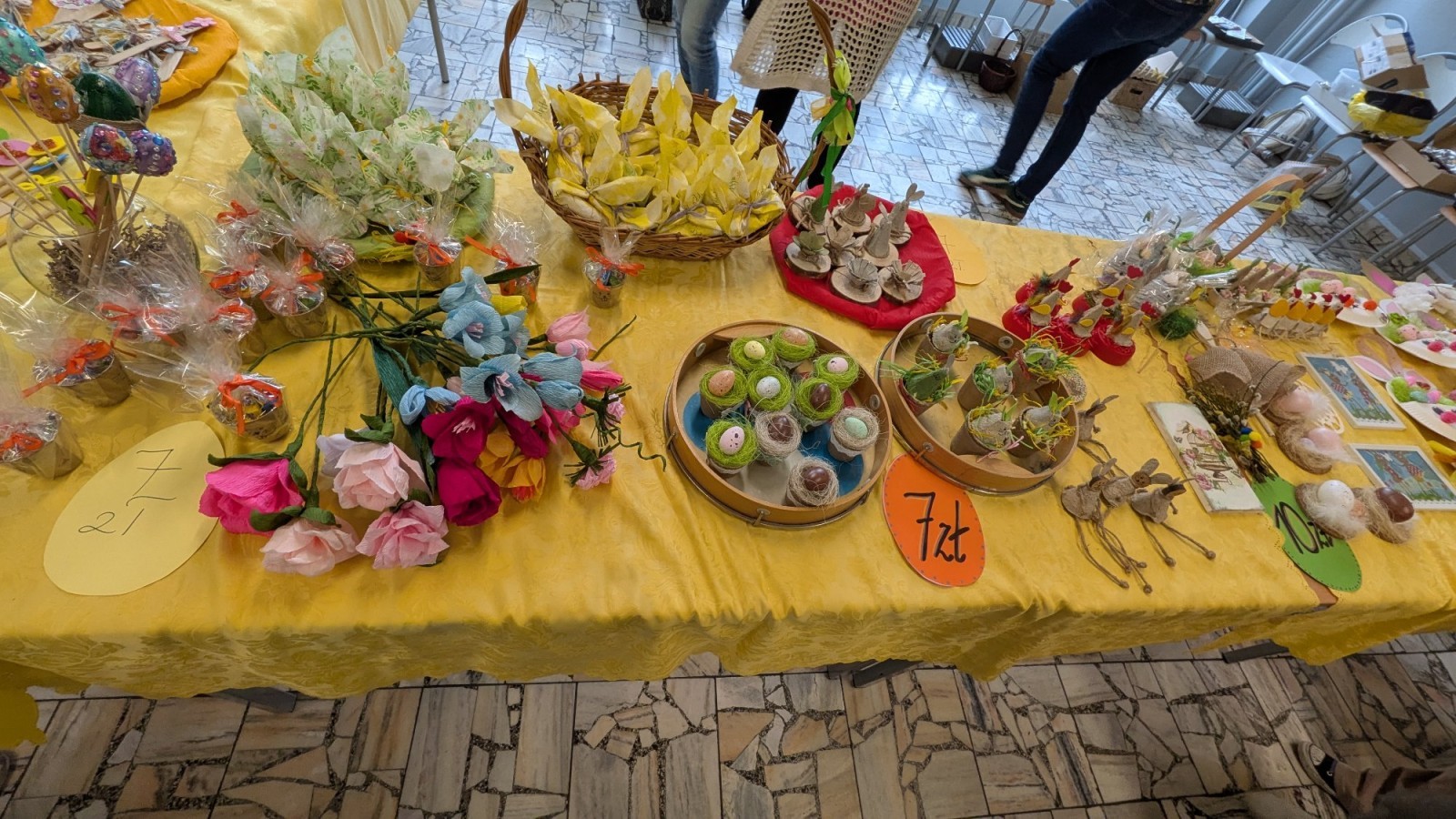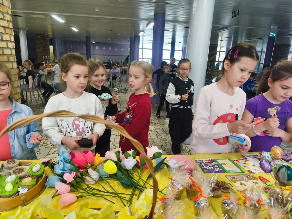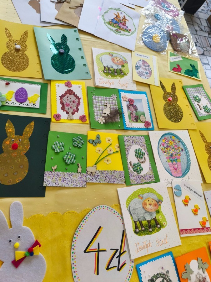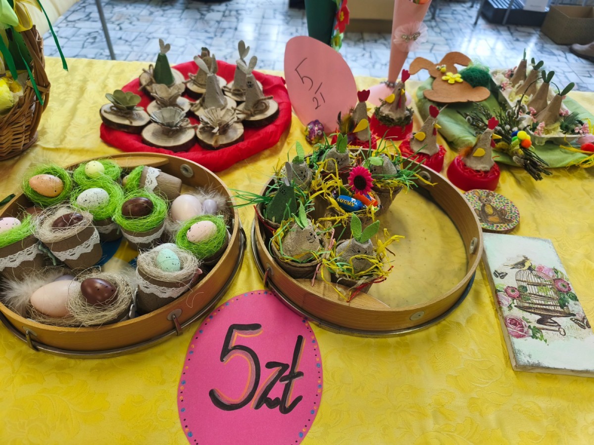 Uczniowie i nauczyciele mogli zakupić ręcznie robione ozdoby wielkanocne, pisanki oraz kartki świąteczne. Wszystkie przygotowane rzeczy były wykonane przez uczestników świetlicy oraz ich opiekunów.